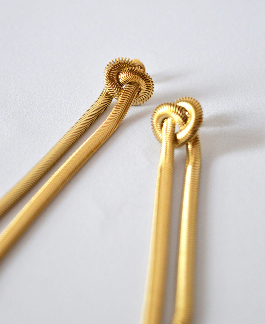 Par de aros colgantes de acero inoxidable enchapado en oro.