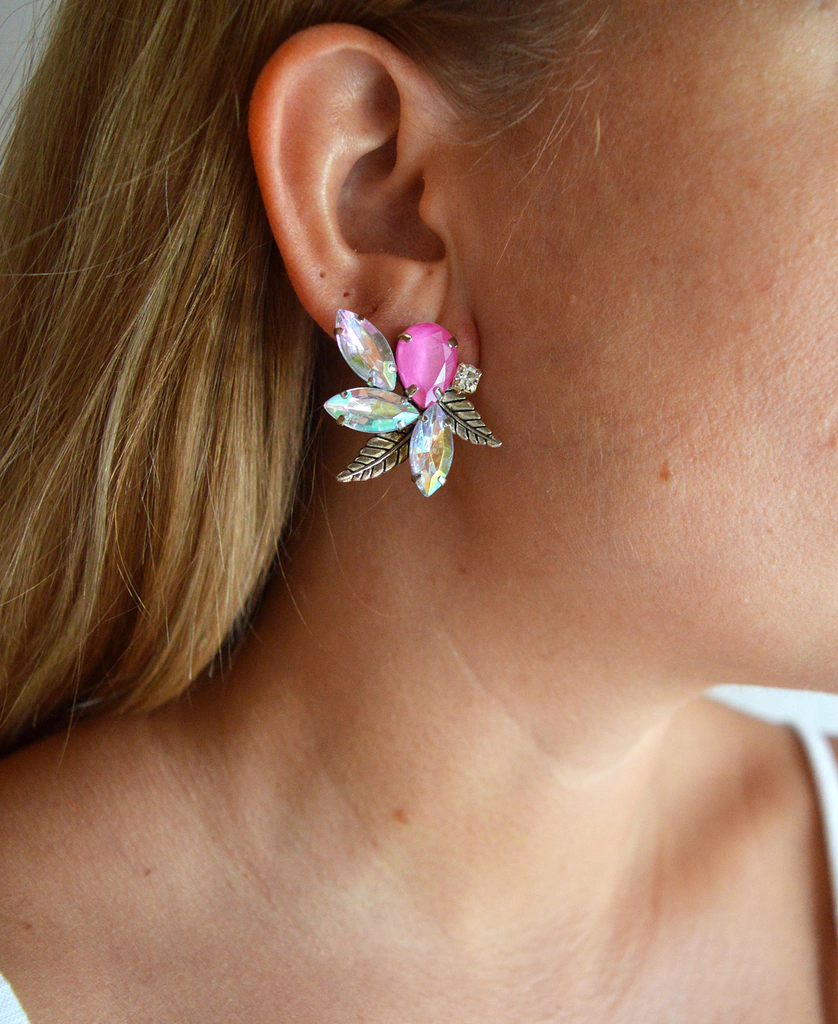Gemas fucsia y tornasol, hojas plateadas