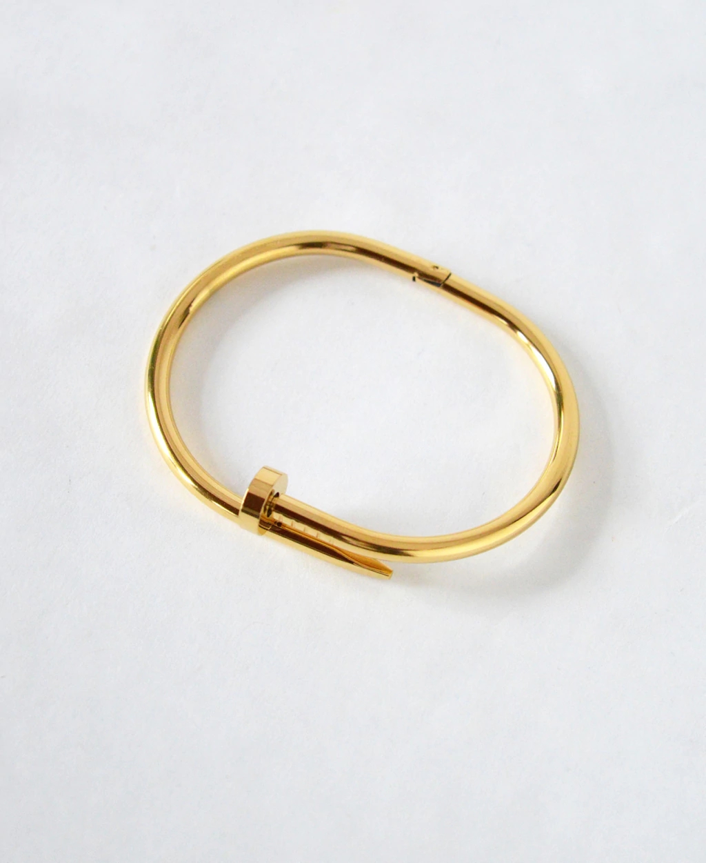 Pulsera ovalada de acero inoxidable enchapado en oro.